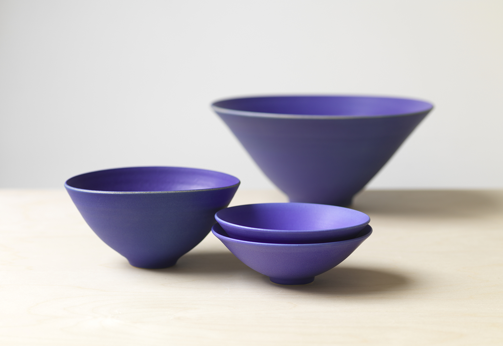 Large Matt Blue/Purple Stoneware & Porcelain Bowls